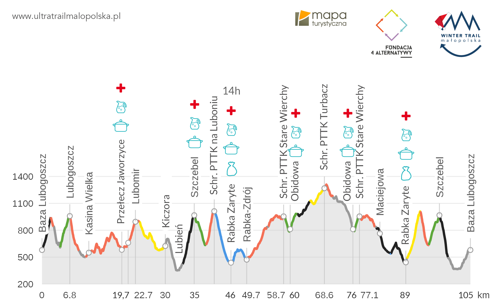 - Lubomir – punkt kontrolny i odżywczy/nawadniania, ok. 21 km;
