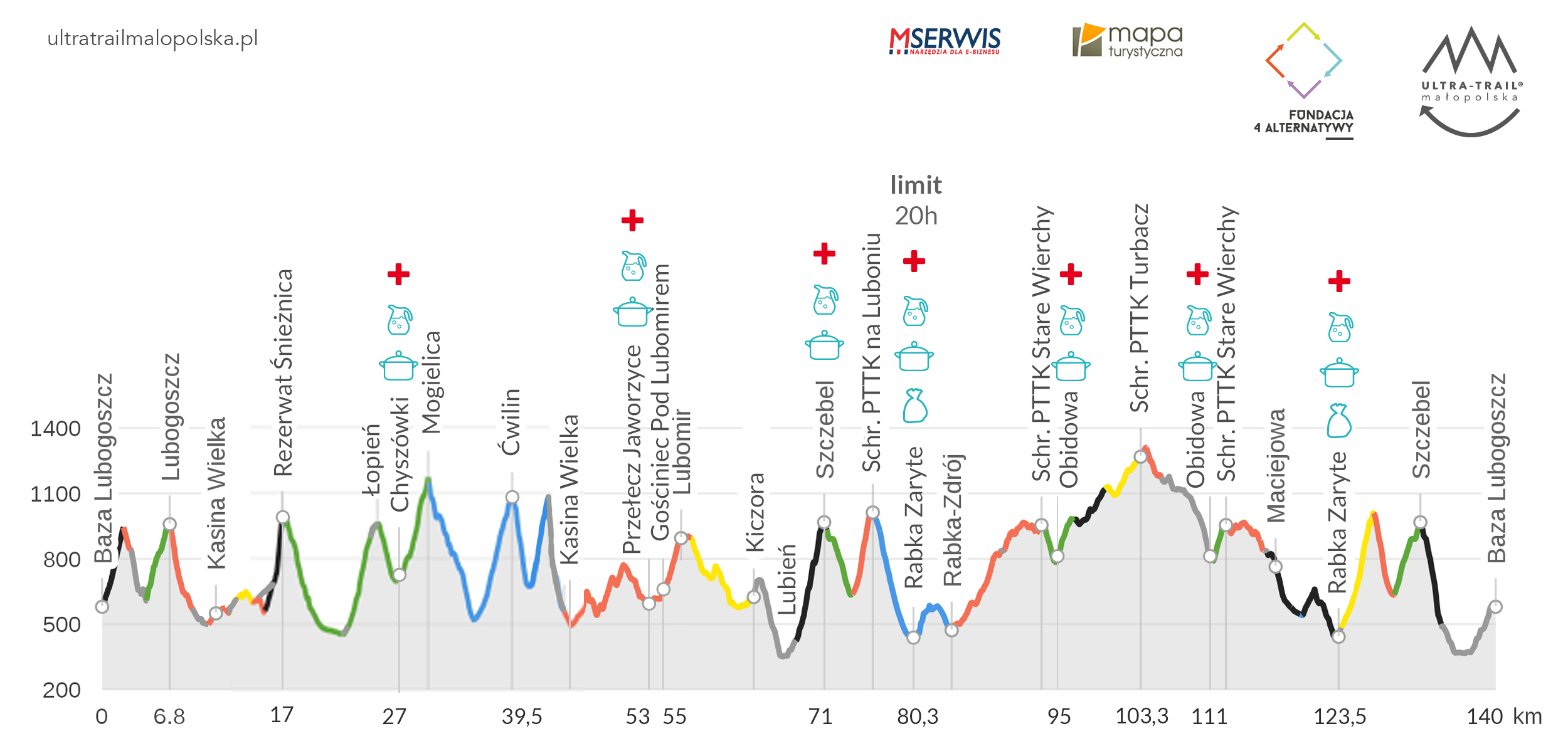- Rabka Zaryte – punkt kontrolny i odżywczy/nawadniania, PRZEPAK, ok. 124 km;