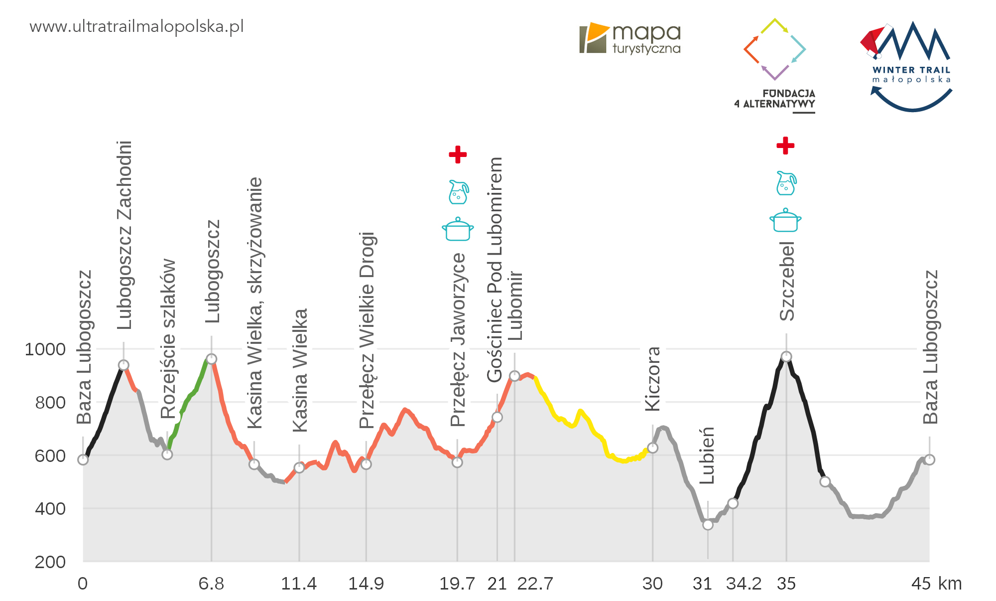 Przewidziano 2 punkty kontrolne i odżywcze/nawadniania: